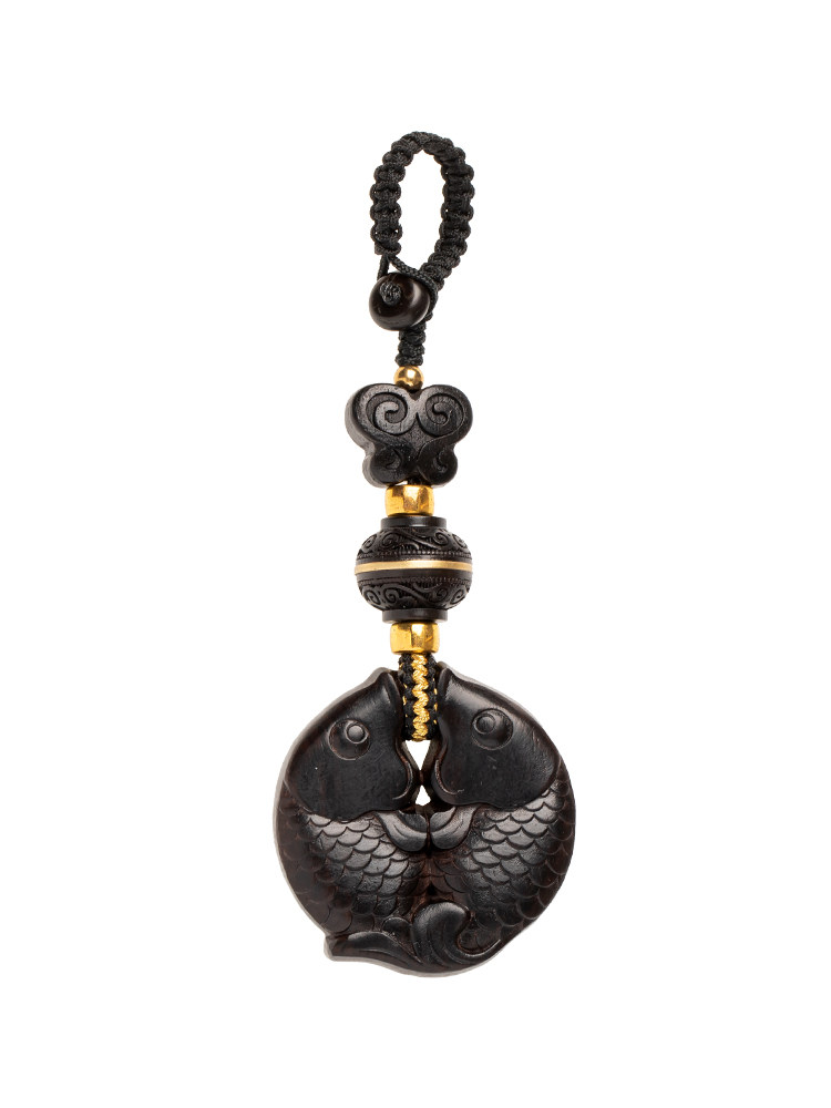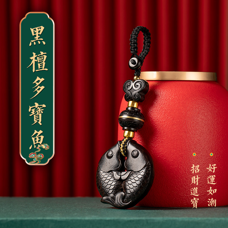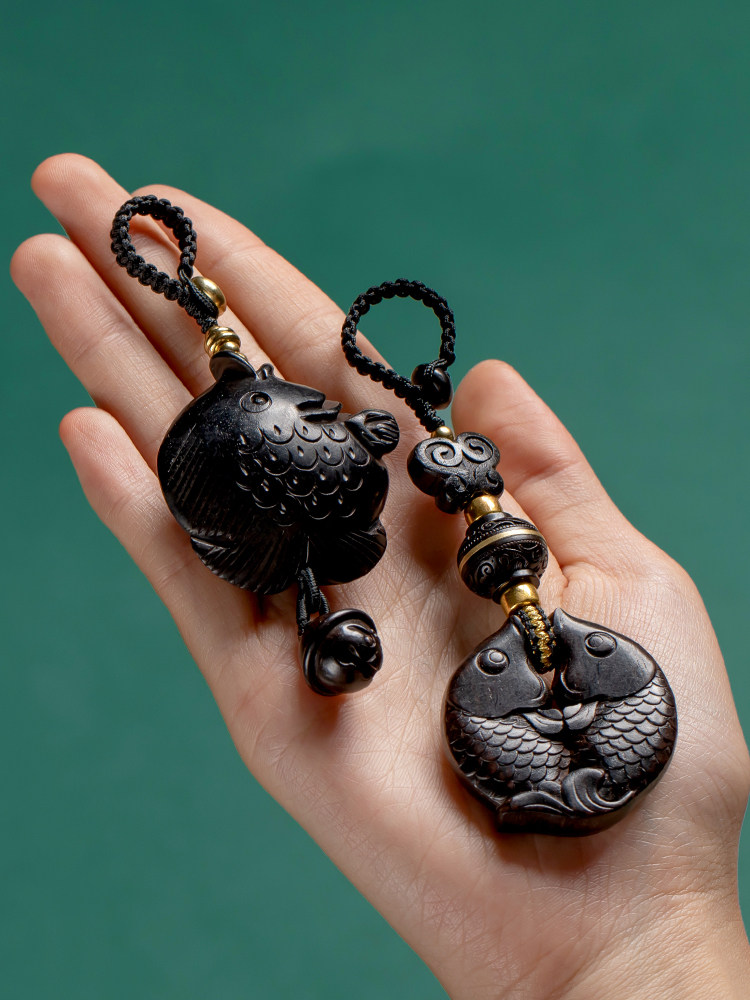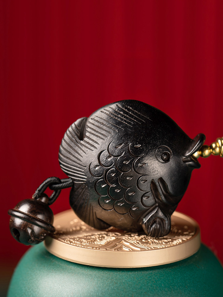Black Sandalwood Fish Merchants Car Key Buckle Pendant Small Libyan Wave Pao Safe And High-end Bag Hang Personality Creative Men And Women