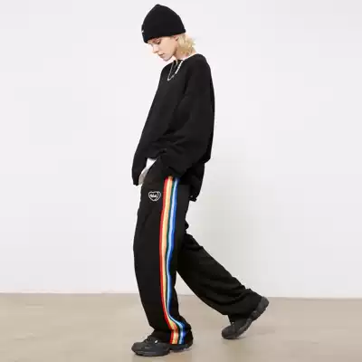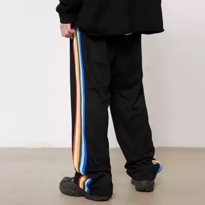 (WUT official shop) Rainbow Striped Straight High Street Wide Leg Pants National Tide Brand Men's and Women's Loose Casual Long Pants
