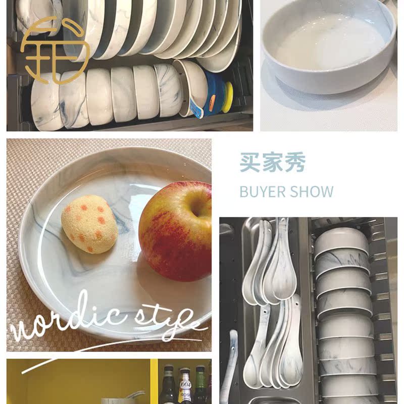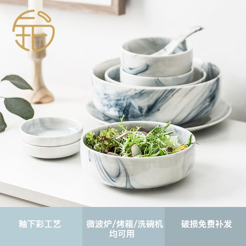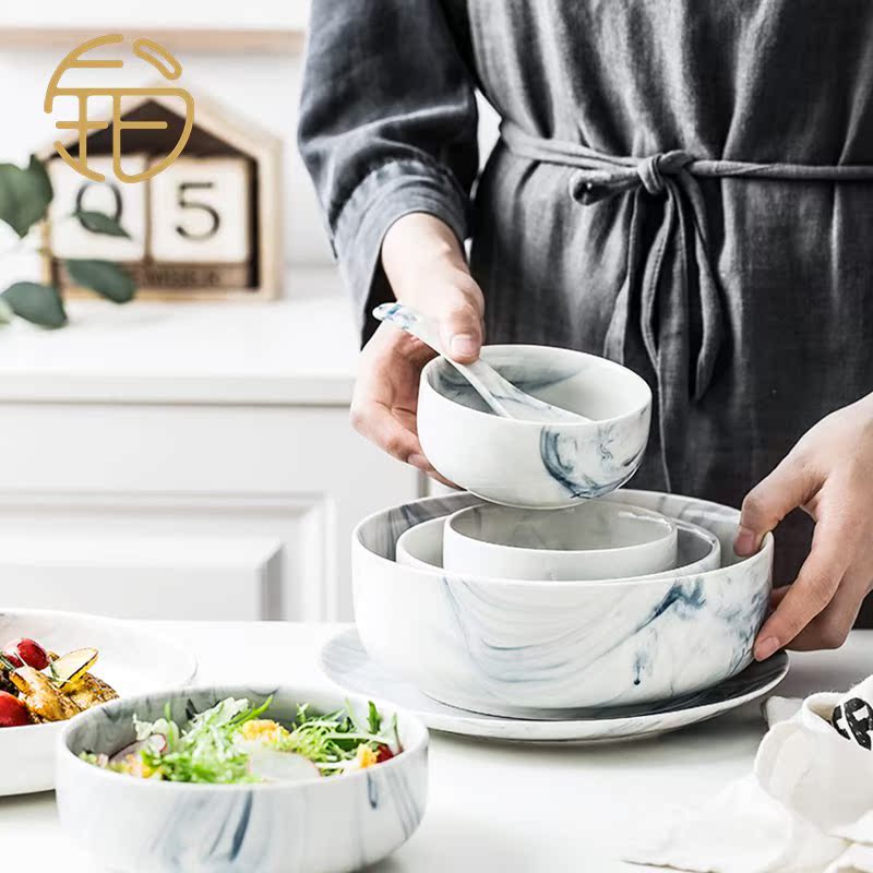 Bo Yuechen boutique bowl set home marble pattern creative ceramic bowl and chopsticks plate Nordic style high-end gift