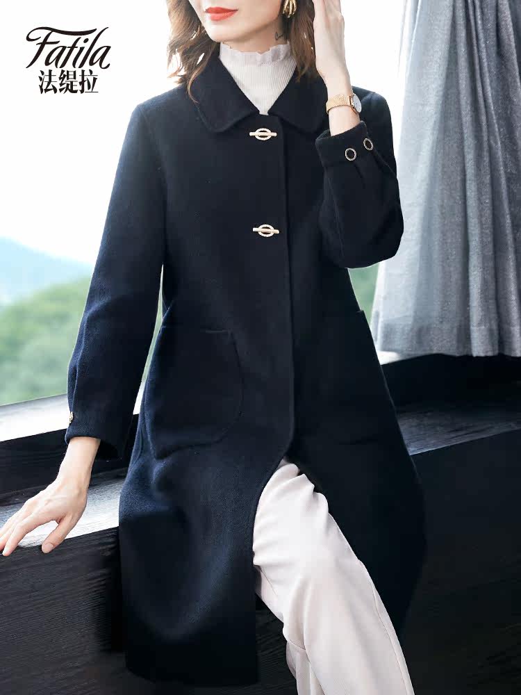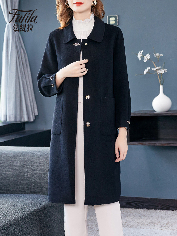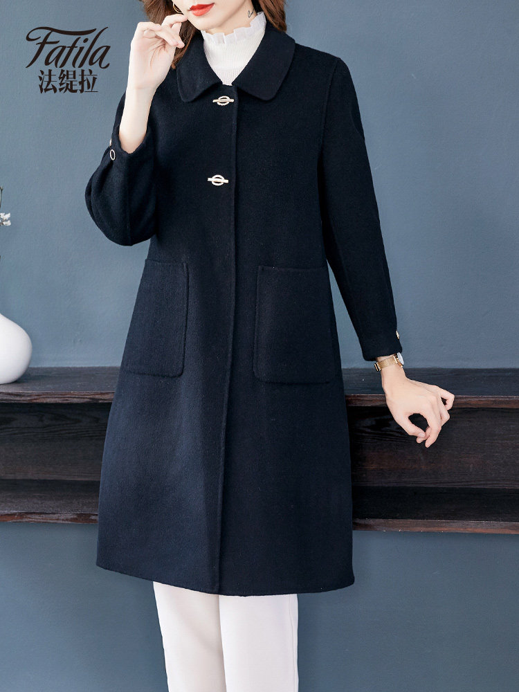 Black double-sided cashmere coat women's mid-length 2020 new autumn and winter woolen coat for middle-aged and elderly mothers