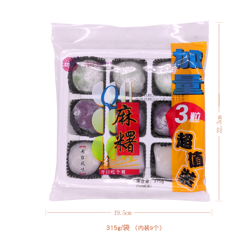 Glutinous rice flour, purple rice flour, white sugar, maltose syrup, red beans, sesame, peanuts, drinking water, vegetable oil, starch