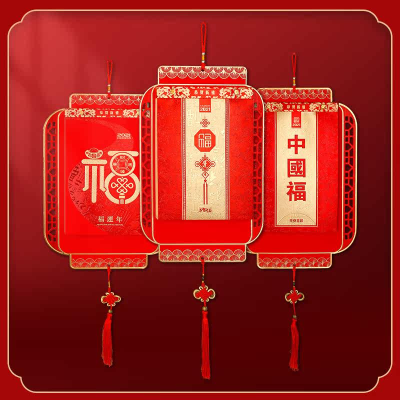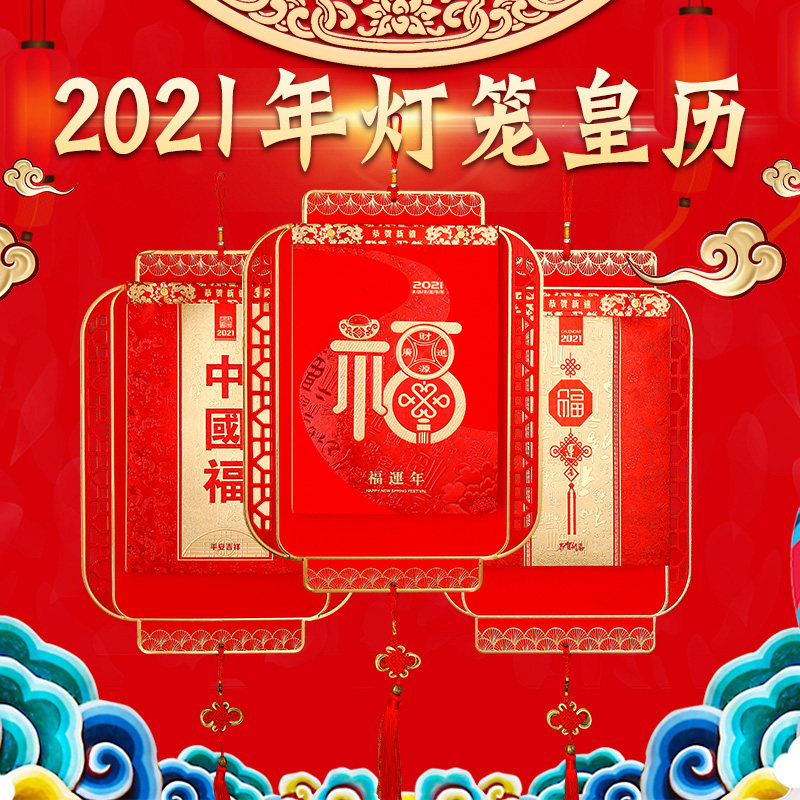 2021 Double Day Imperial Calendar Bull Year Lantern Single Calendar Advertising Fu Character Hang Calendar Custom Huang Calendar Rip Calendar to make an annual calendar