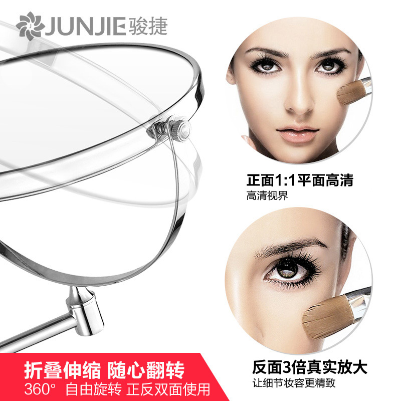 Free Punch Bathroom Makeup Mirror Hotel Wall-mounted Enlargement Cosmetic Mirror Telescopic Folding Folding Dressing Room Removable Mirror