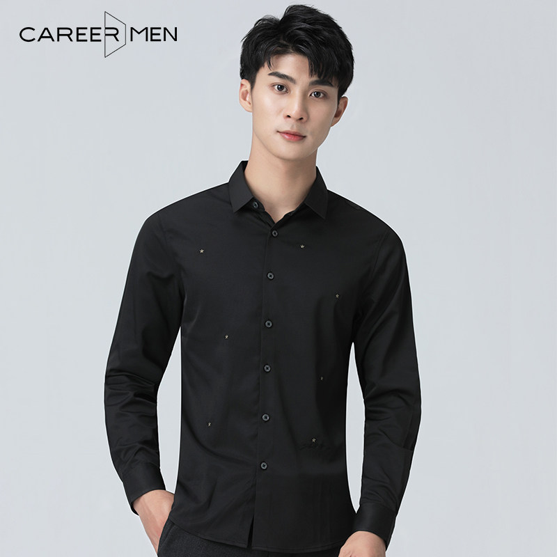 Career men's men's long sleeve shirt Han version of the European and American fashion Fashion Handsome stars Jacquard Tidal-style Shirt Male