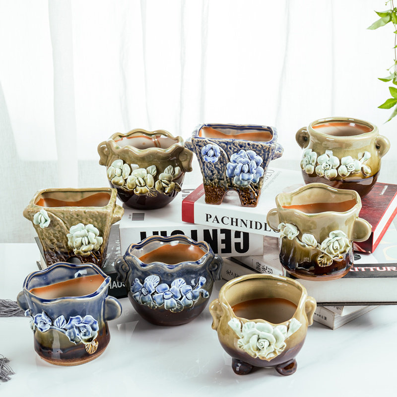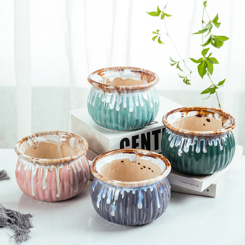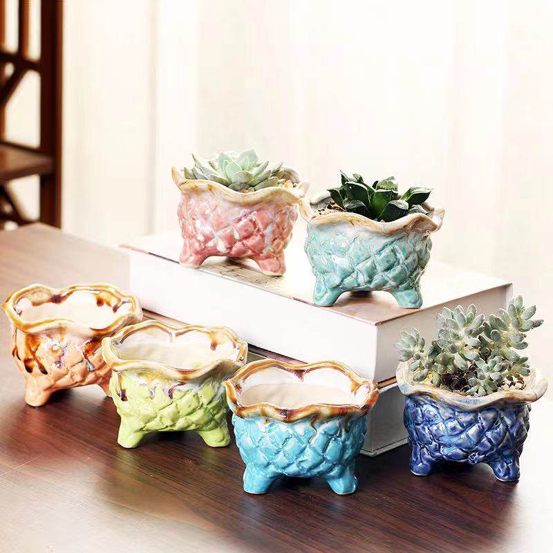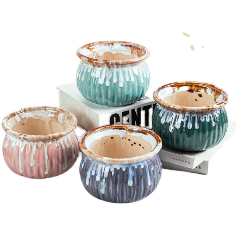 Succulent flower pot burst glaze color ceramic plant rough pottery retro creative size caliber simple special clearance