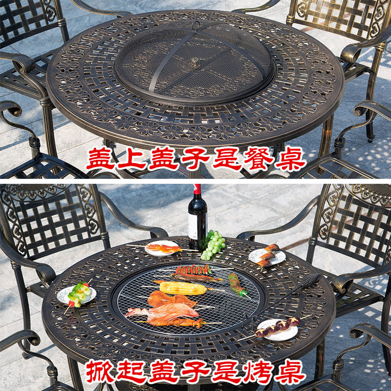 Outdoor BBQ table and chair combination courtyard villa outdoor BBQ furnace household open-air garden iron cast aluminum table chair