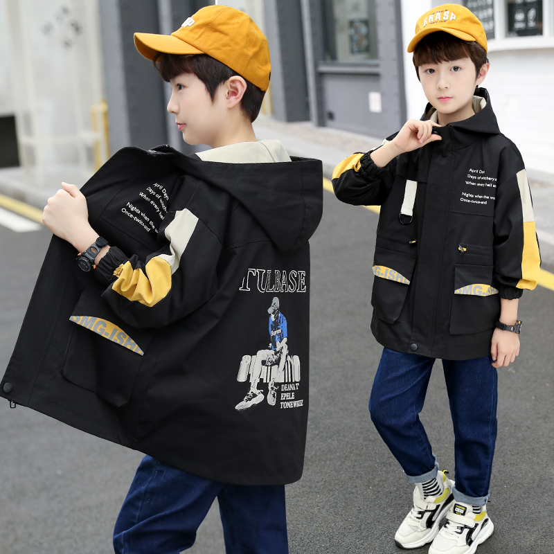 Boy Clothing Boy Coats Spring Autumn Clothing 2022 New Foreign Pie Children's Wind Clothes Mid-Chinese Fairy Netting Red Korean Version Tide