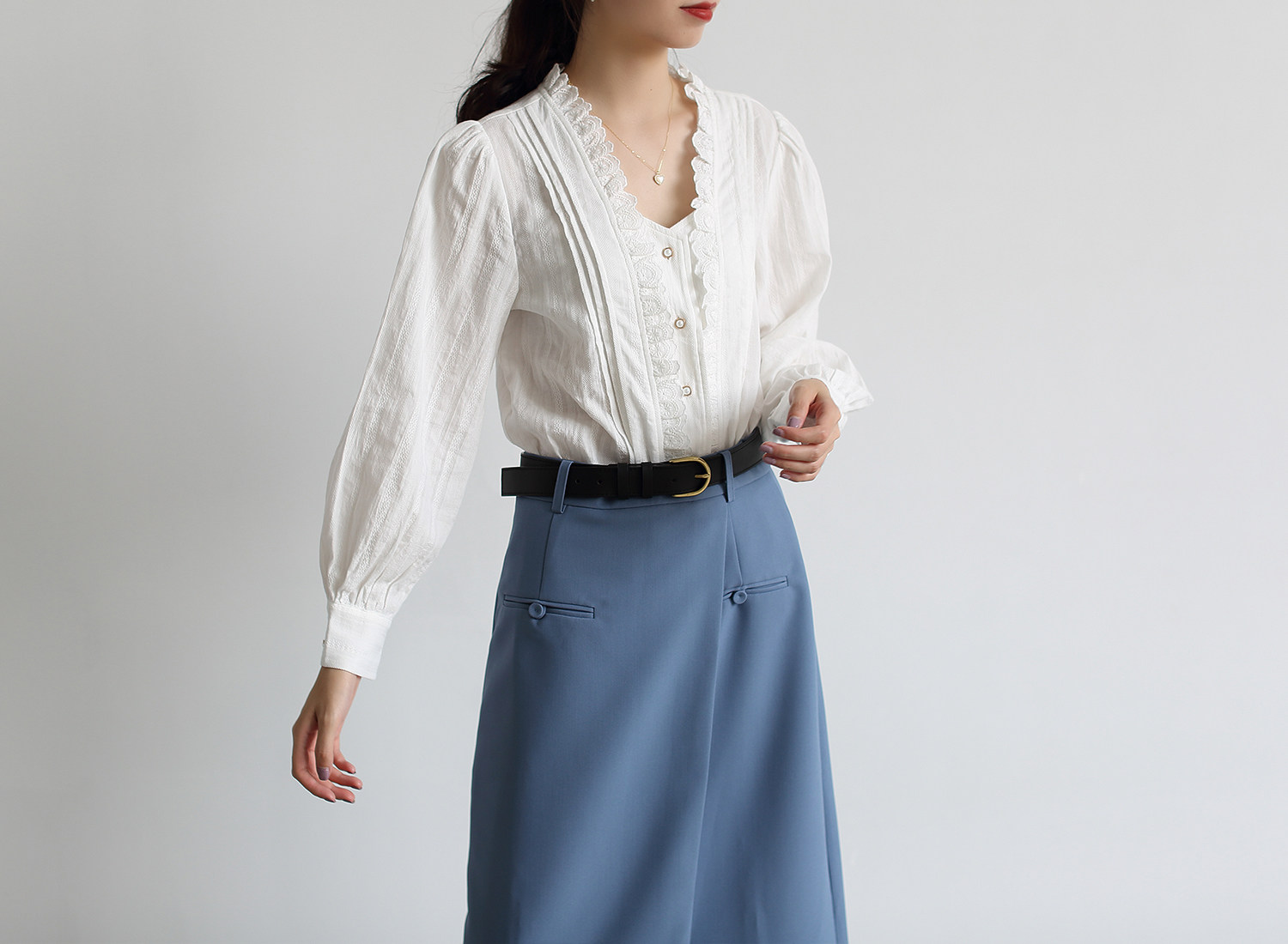 SEEK AUTUMN front piece asymmetric small A gray blue skirt all-match basic simple mid-length version of the meat-covering skirt