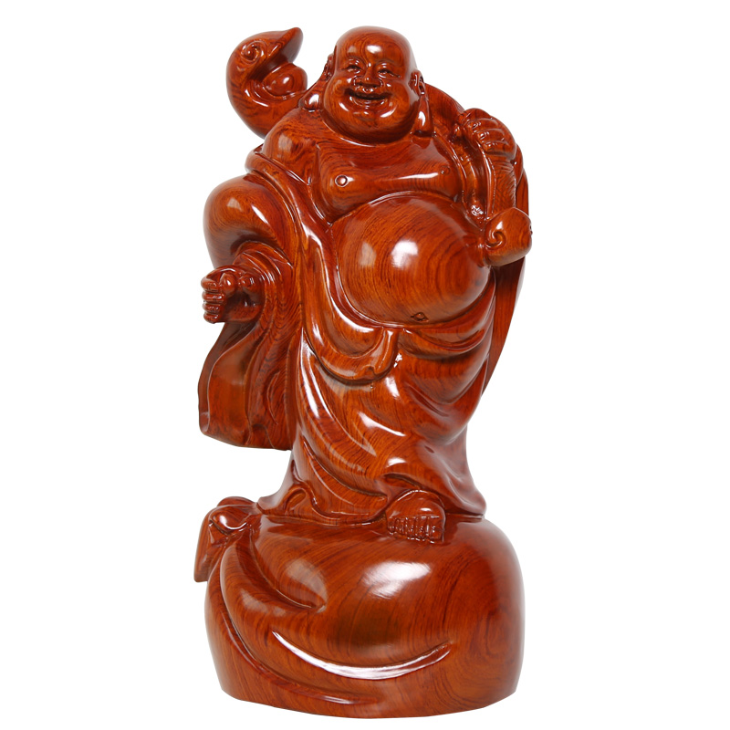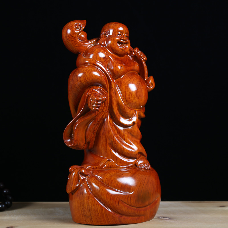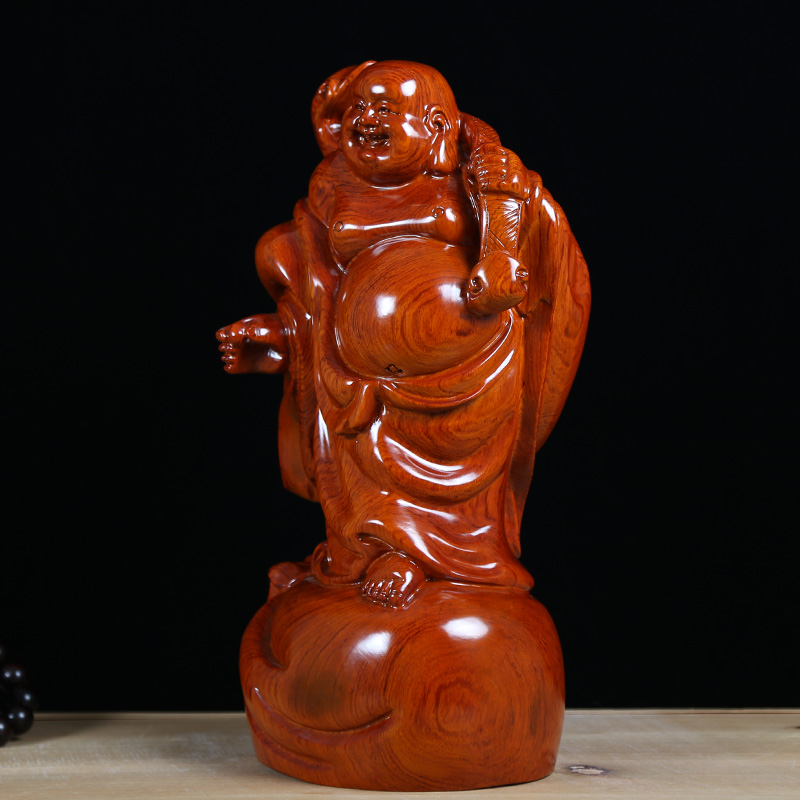 Huanghuali solid wood carving Ruyi Maitreya Buddha statue ornaments send treasure laughing Buddha living room porch decoration mahogany crafts