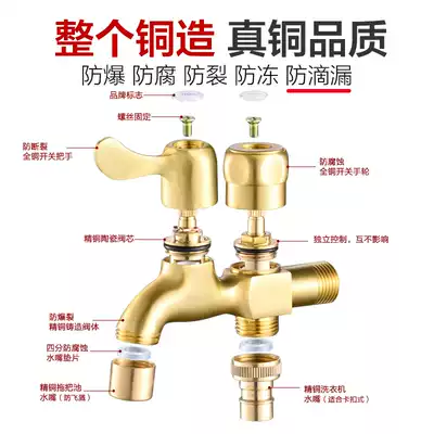 All copper washing machine faucet washing machine one in two out three household universal mop pool splash-proof single Cold Faucet