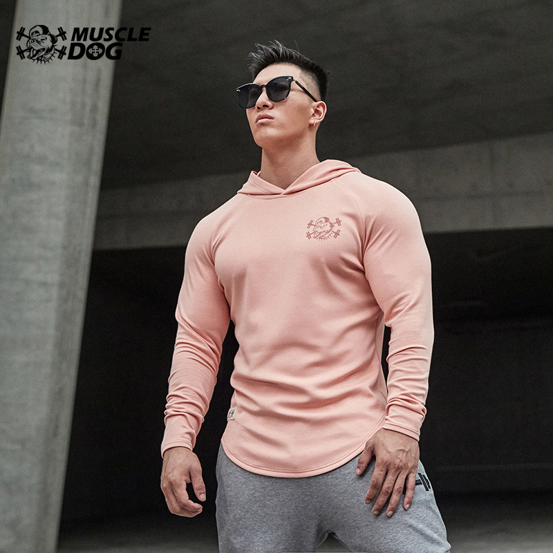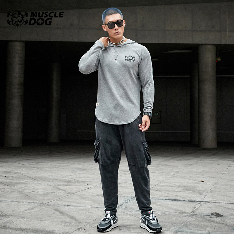 Muscle dog sports sweater men's fashion brand slim stretch casual fitness clothes Training clothes Hooded long-sleeved T-shirt