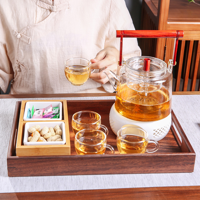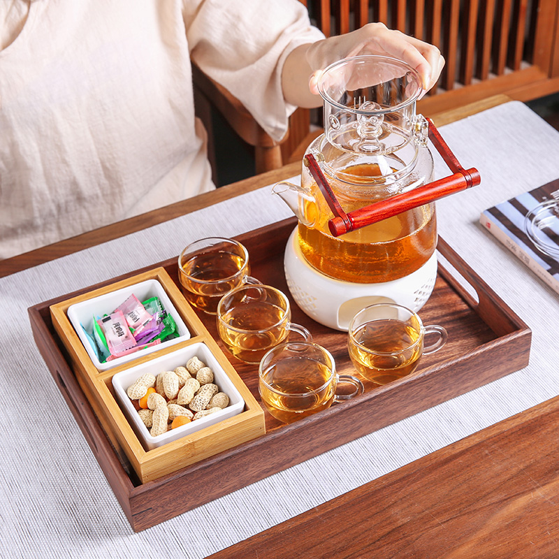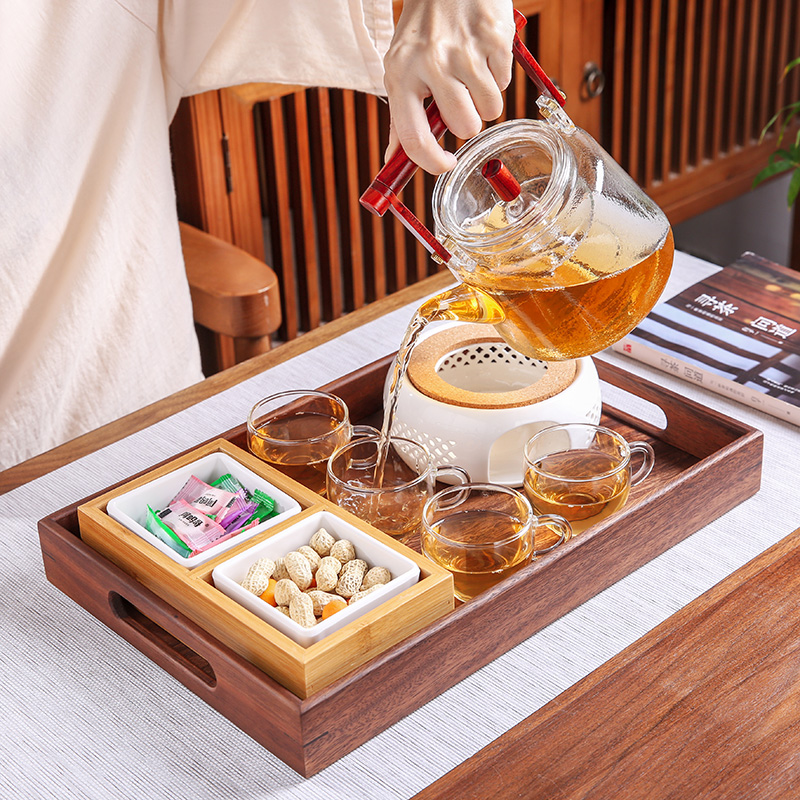 Day Style Cuisine Nursery Tray Heat Resistant Glass Flower Teapot Suit Candle Heating Base Afternoon Tea Solid Wood Raiders Big