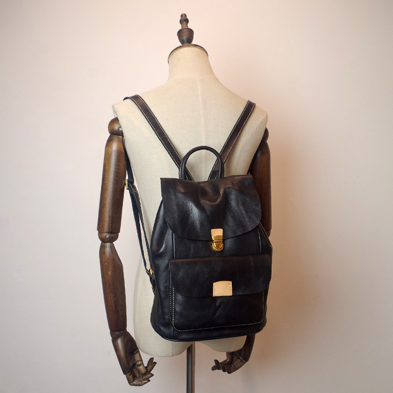 Retro niche leather women's shoulder bag first layer cowhide new design original handmade vegetable tanned leather small backpack