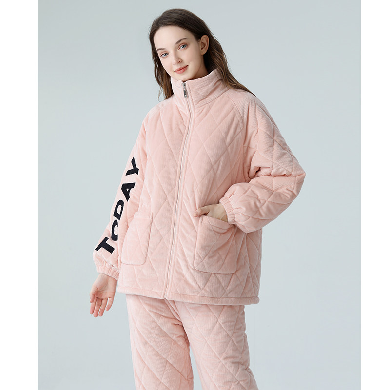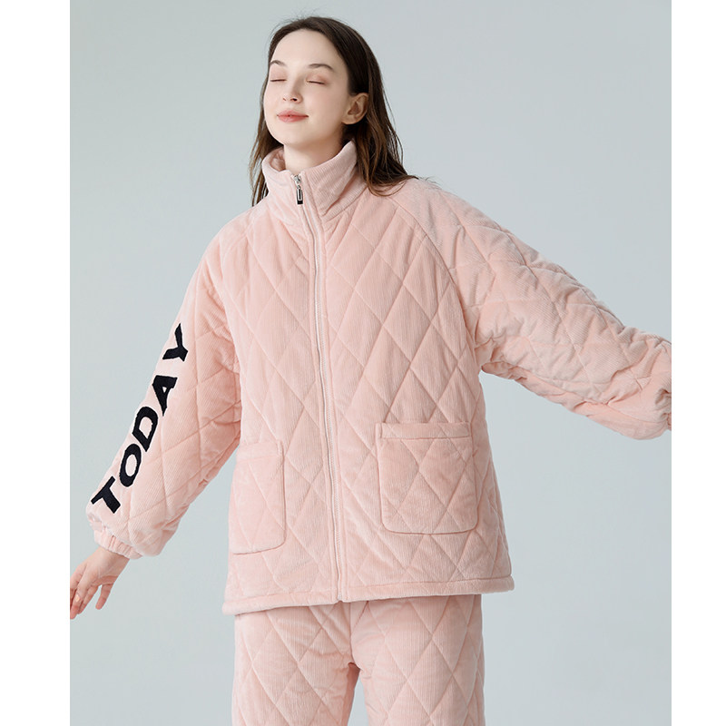 IIZZINI original pyjamas woman winter long sleeve coral suede clip cotton thickened with velvety long pants home suit suit