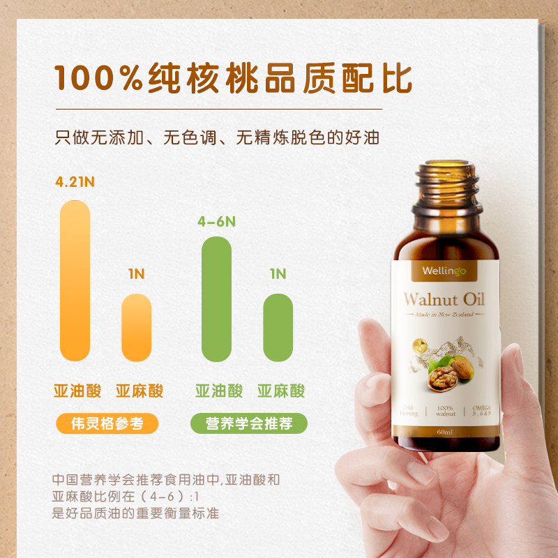 Wellingo Weilingge baby walnut oil baby nutrition edible oil 60ml * 3 send infant food supplement