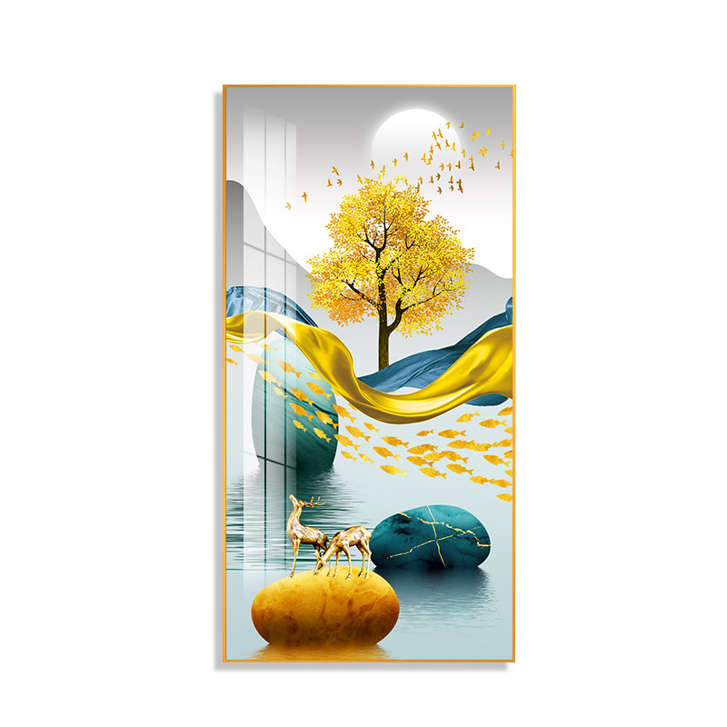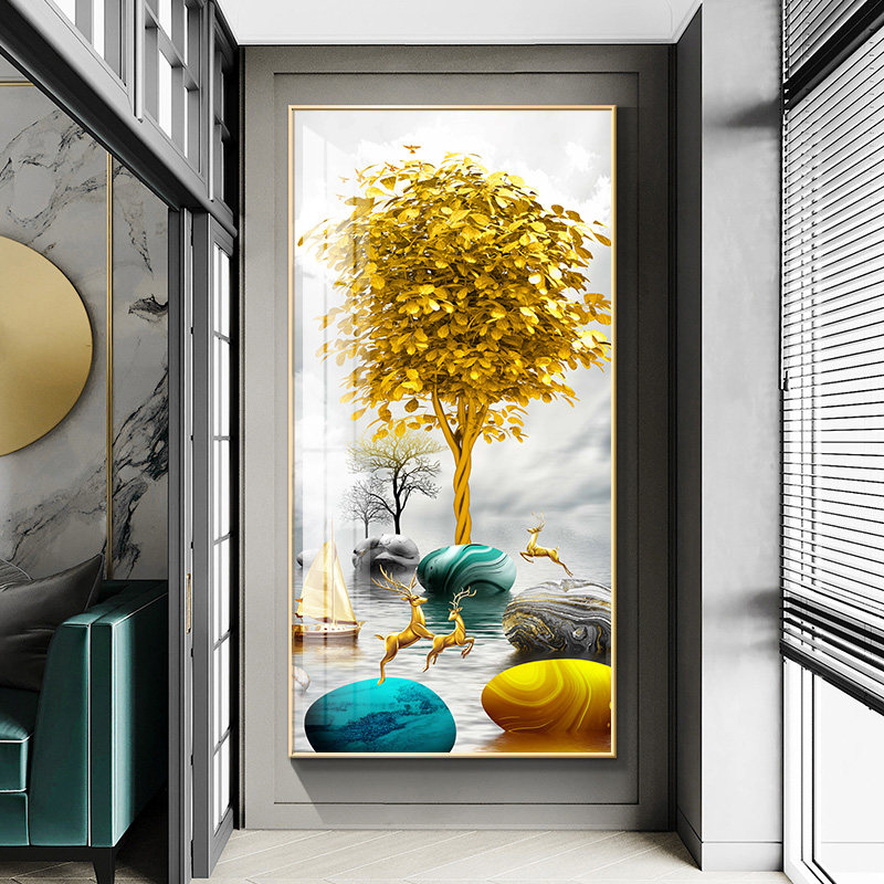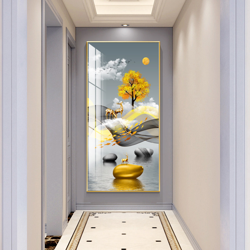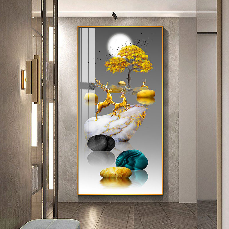 Entrance to the family Xuanguan Decorative Painting Light Extravagant Vertical version of the corridor End of the painting Modern minimalist Living room Stone to run a hanging painting
