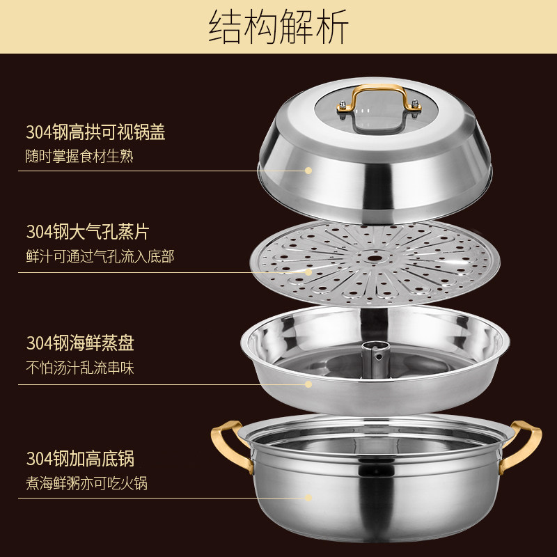 304 multi-function steam pot with perforated seafood pan 304 multi-function steam pot without perforated seafood pan steam pot (with perforated seafood pan) steamer with 2 layers of steaming compartment (seafood pan without holes) steamer with 2 layers