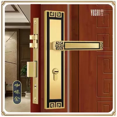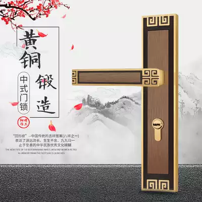 New Chinese door lock Indoor pure copper silent household wooden door Universal wooden door All copper set bedroom door lock