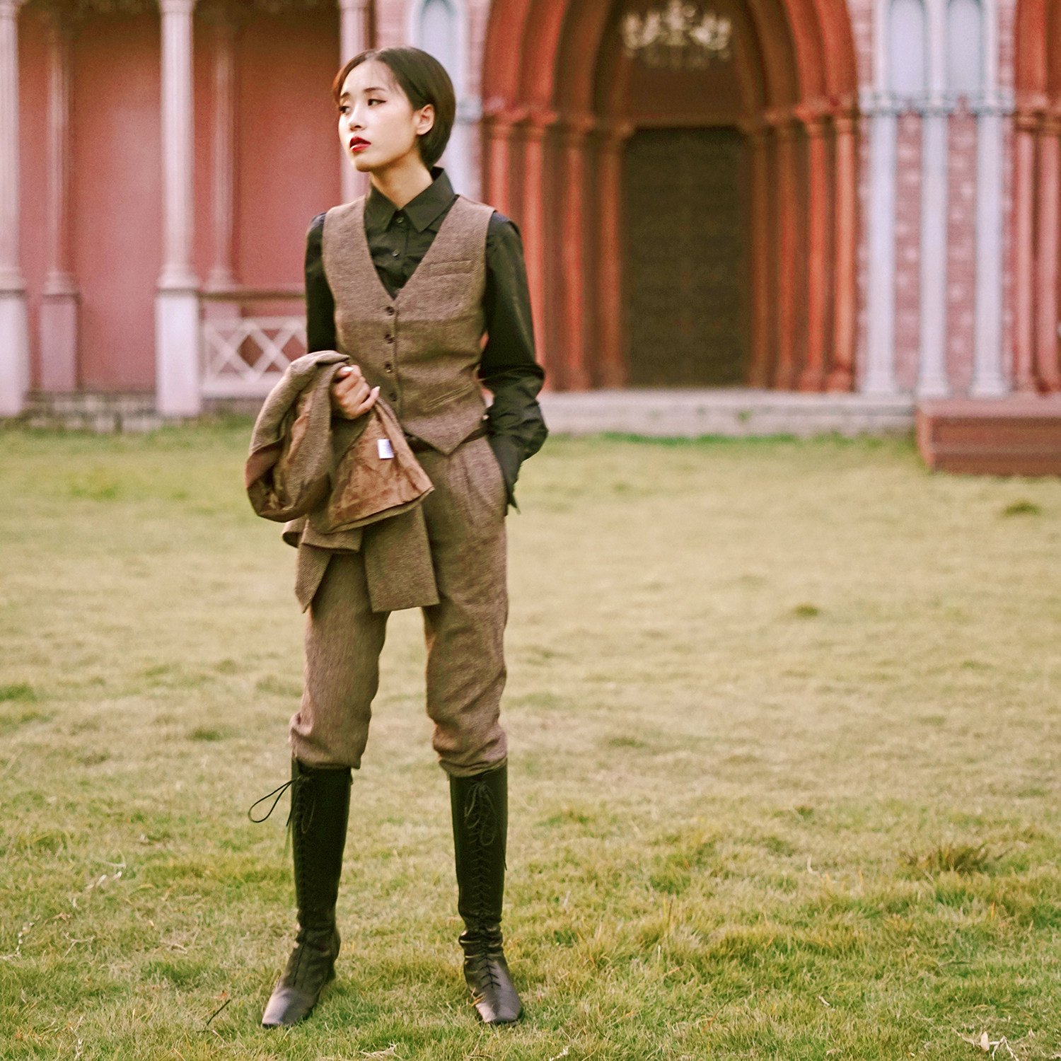 Suit 2022 New female small subspring horseback riding dress for women's retro Inron waistcoat Mao's pants