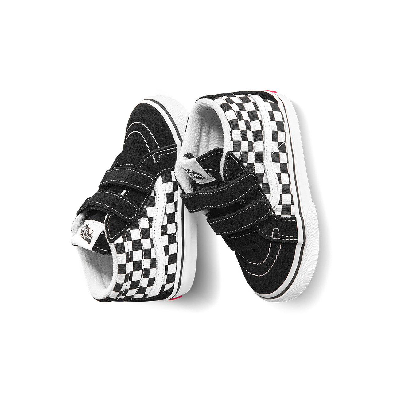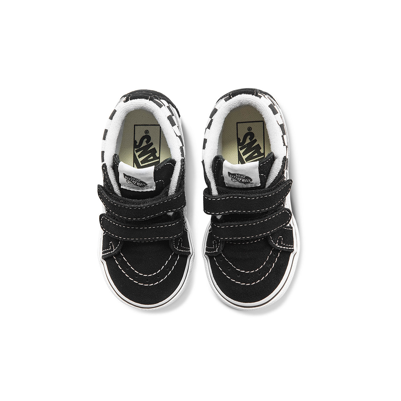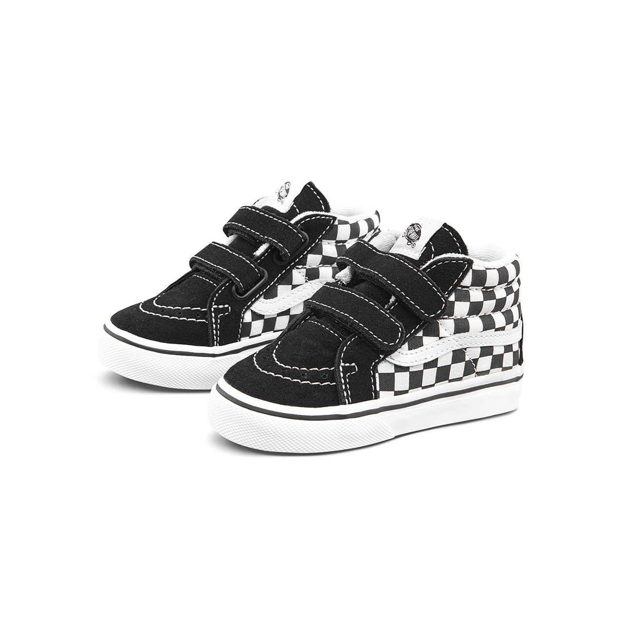 Vans Van Sans Official Boys Black and White Chessboard Grid Magic Sticker Boy Girl Middle Cylinder Shoes