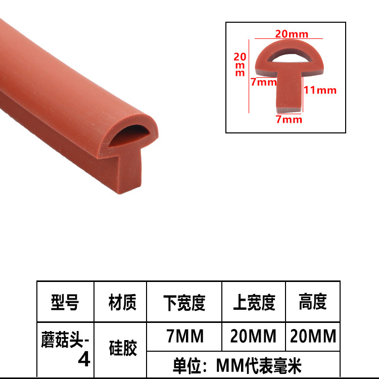Mushroom head seal strip high temperature resistant T-shaped silicone strip oven oven vacuum drying box seal special leather strip