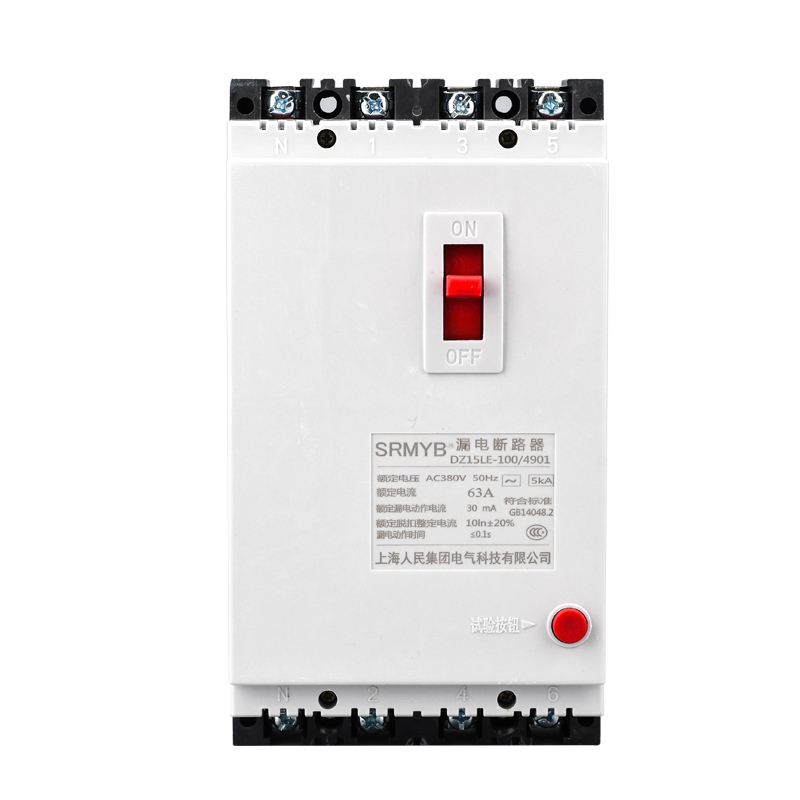 Shanghai people DZ15LE-100A leakage circuit breaker 4901 3901 3901 three-phase four-line plastic shell leakage protector