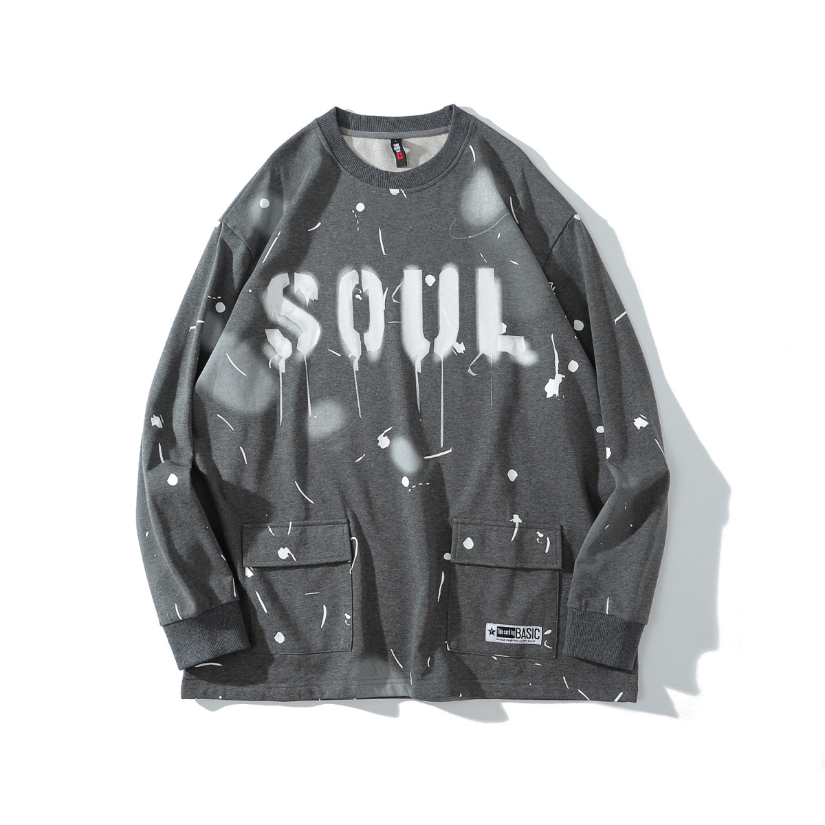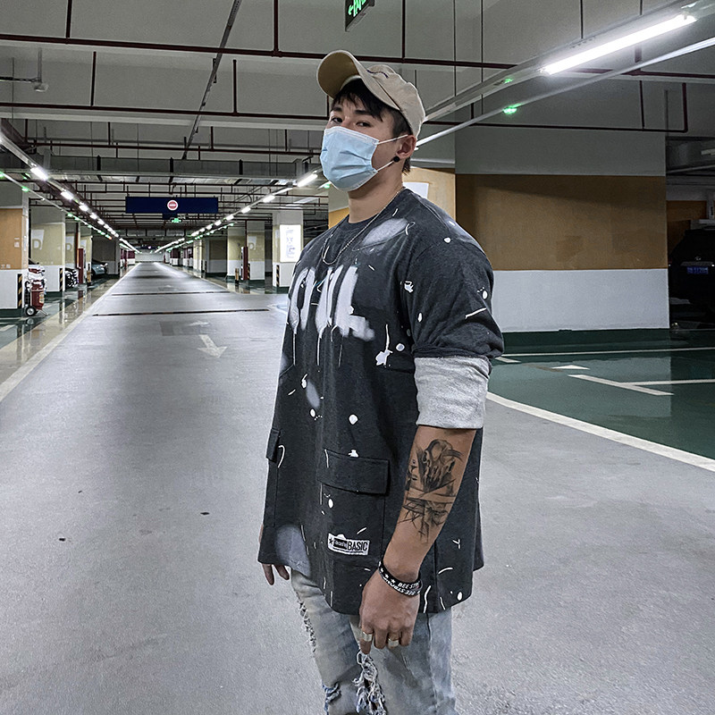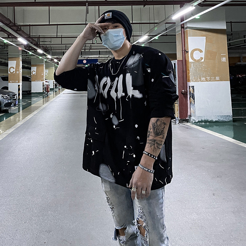 Autumn and winter long-sleeved thick cotton T men's new casual loose pullover top sports big trend muscle fitness training clothes