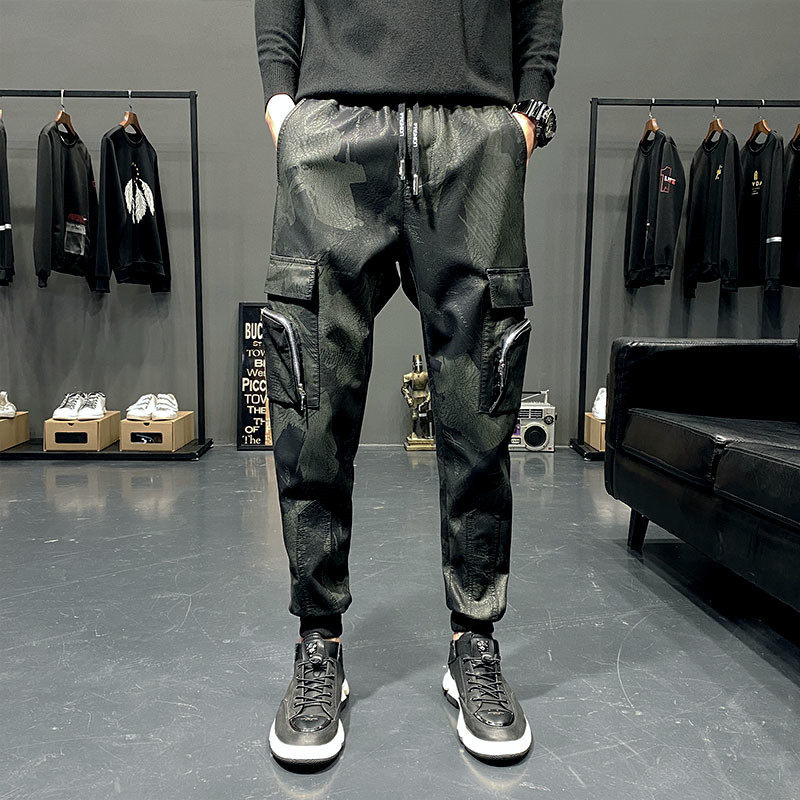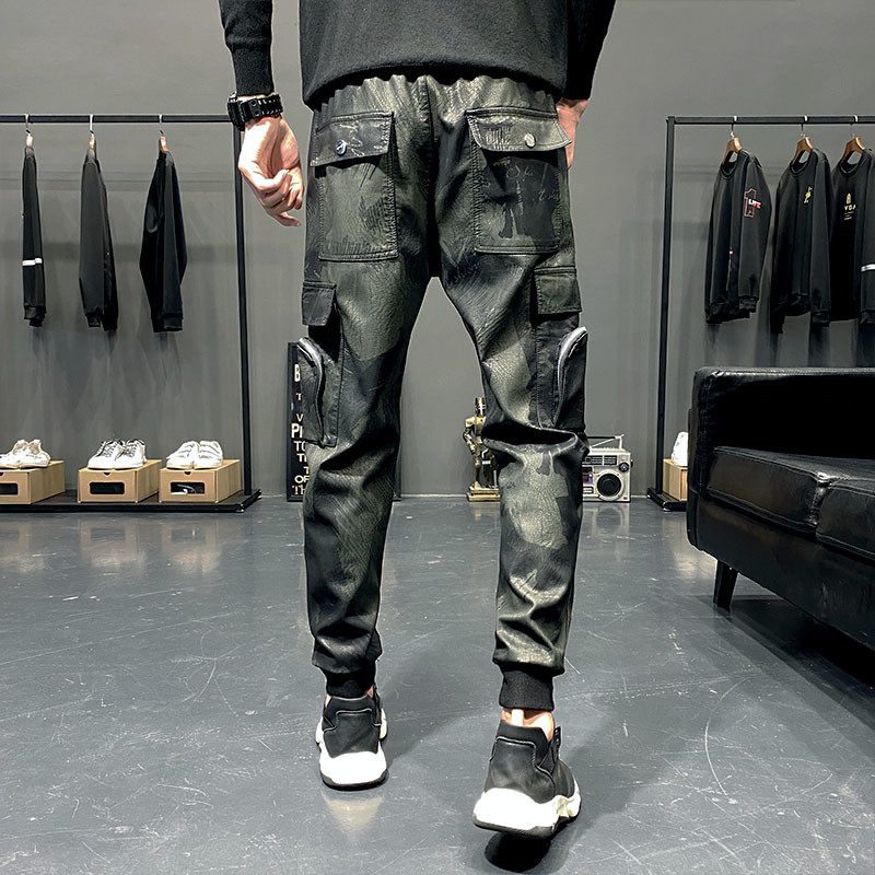 Locomotives leather pants for men slim Korean edition motorcycle windproof trend small leg pants leather boots pants yuppie handsome Harun pants