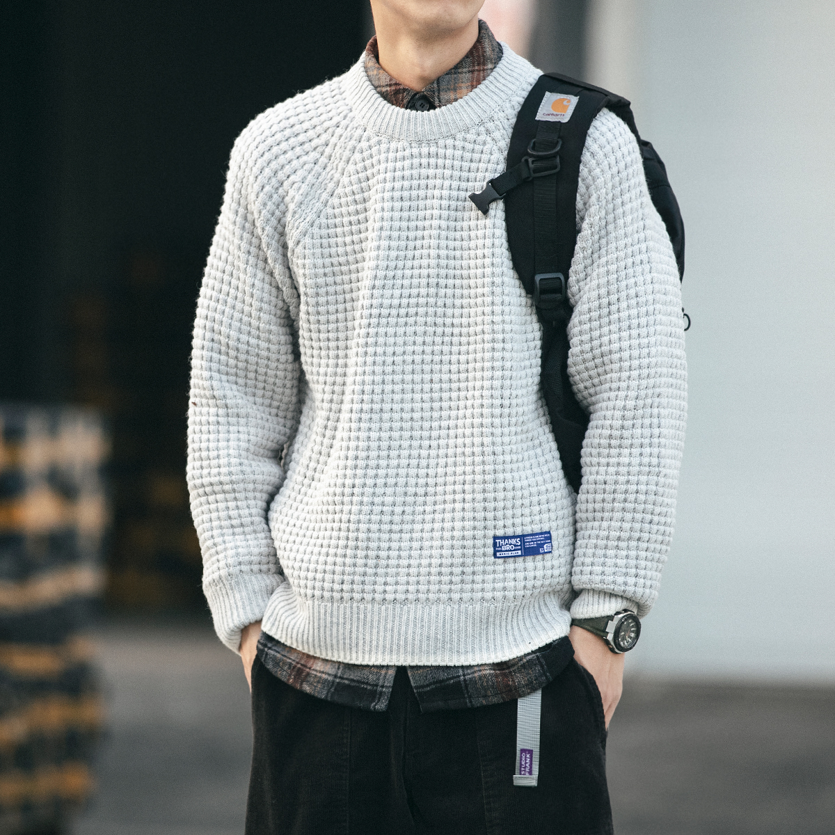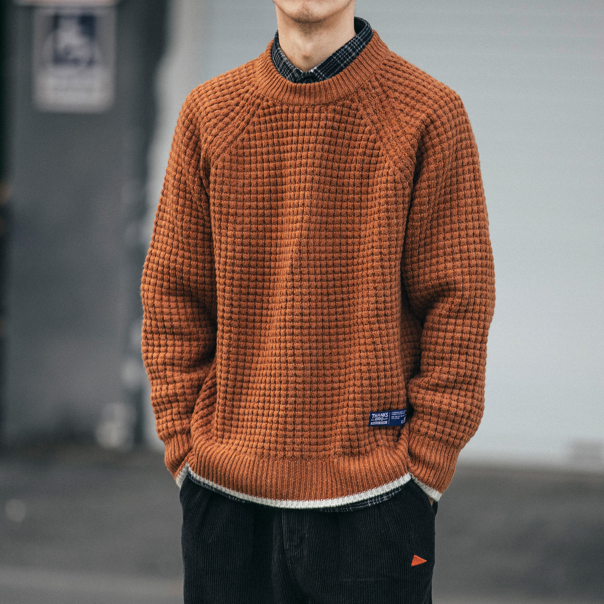 Round neck pullover sweater men's autumn and winter thick fake two pieces of knitwear men's Korean trend personality retro sweater sweater