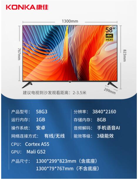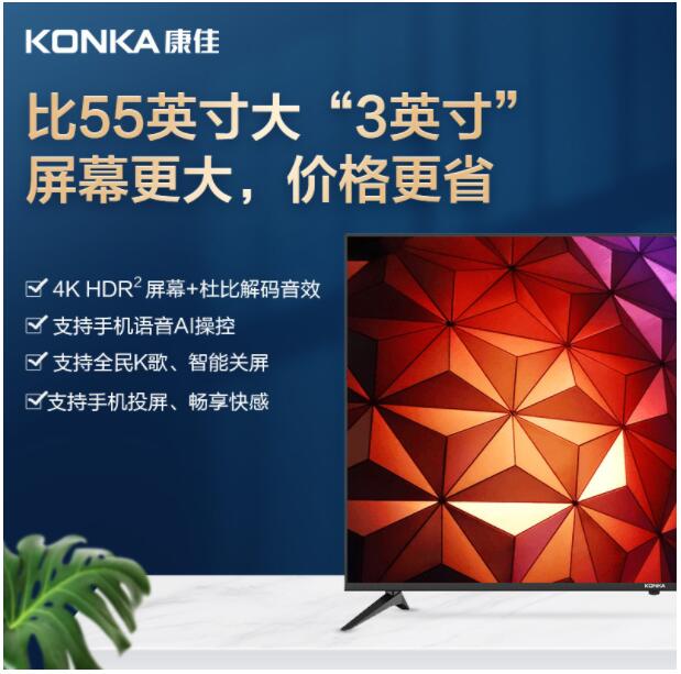 Konka Konka 58G3 58-inch 4K Ultra HD WIFI smart network flat-panel TV 60 large screen