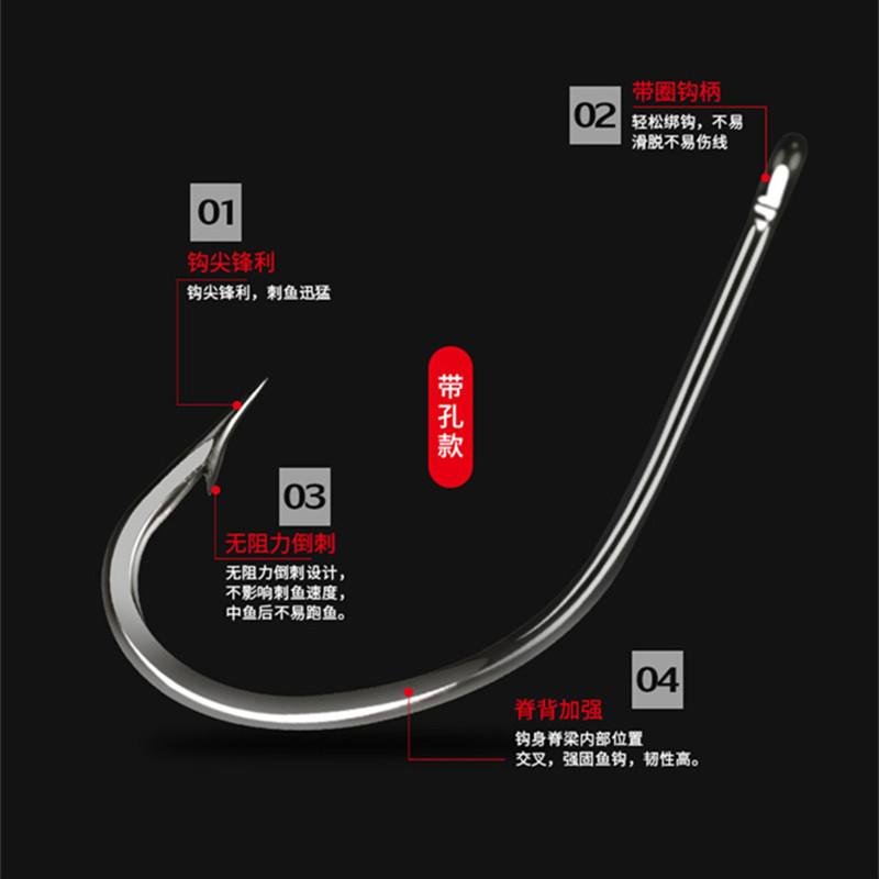 With hole pellet hook No. 20 (50) with hole pellet hook No. 22 (50) with hole pellet hook No. 24 (50) with hole pellet hook No. 26 (50) with hole pellet rec hook No. 28