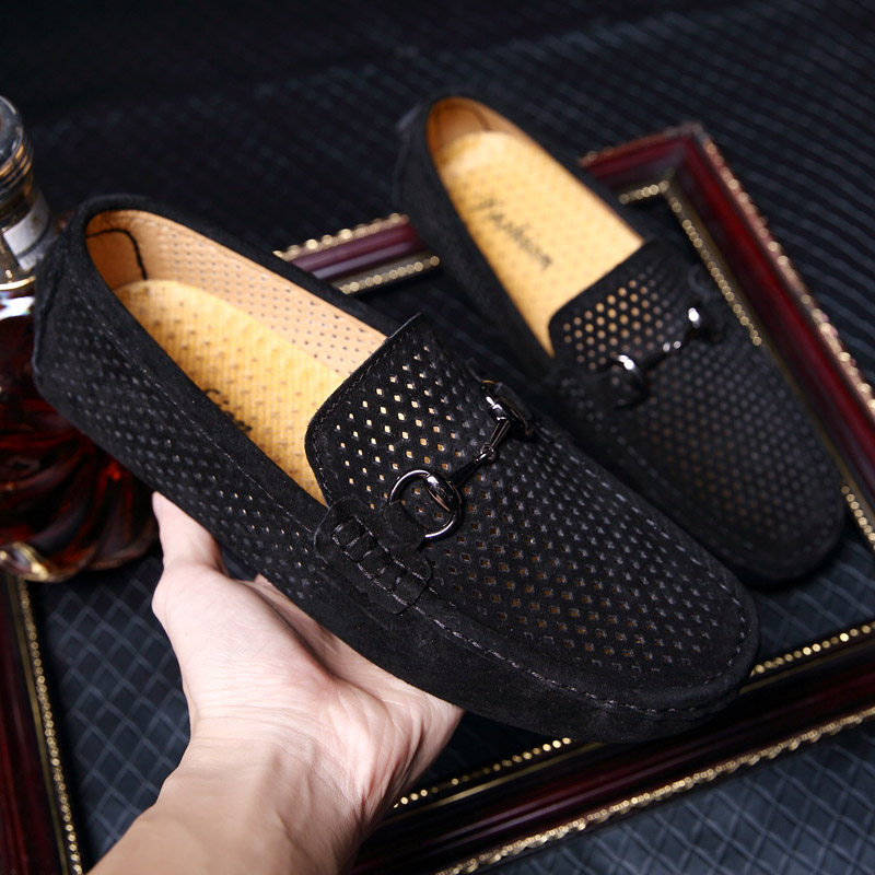 Summer Bean shoes Men's genuine leather breathable men Han prints Lazy Shoes Large Sizes 454647 casual shoes 37 yards of men's shoes