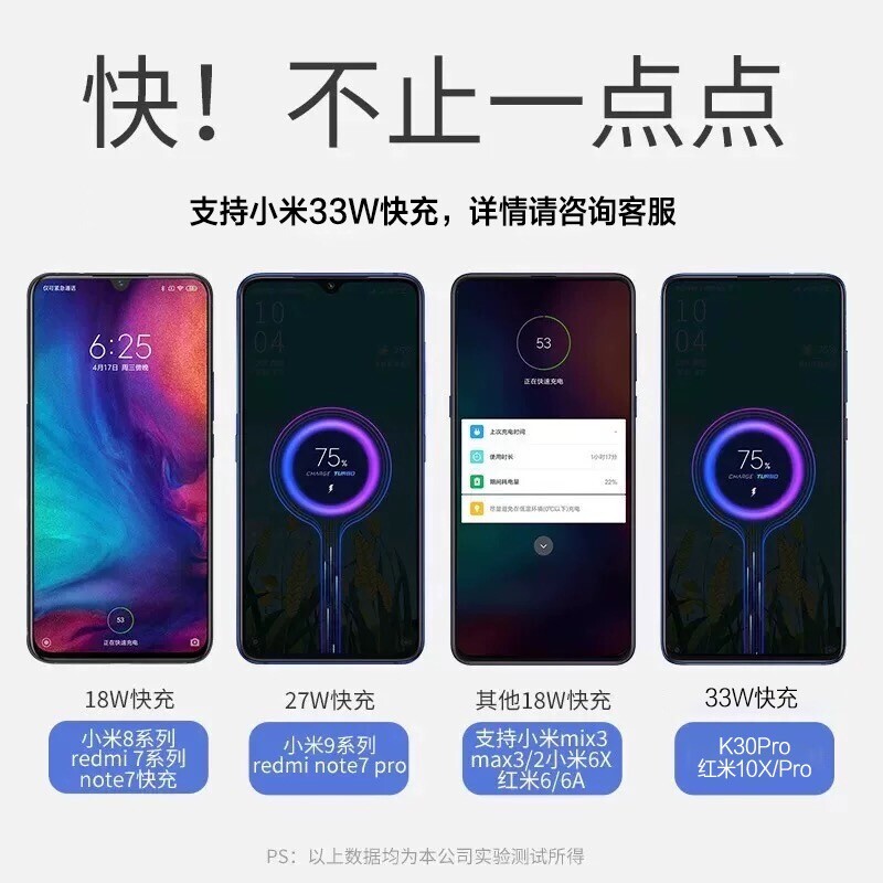Suitable for Xiaomi 10 charger head 30W flash charge type-c data line 5G version suit Xiaomi cc9pro mobile phone longline charging head red rice K30 quick filling plug lengthened
