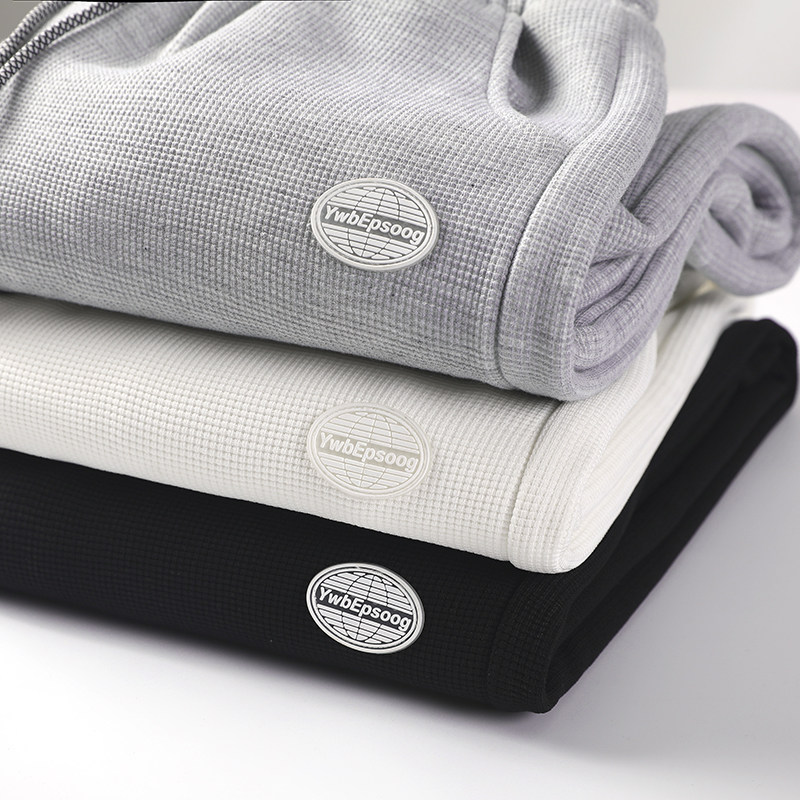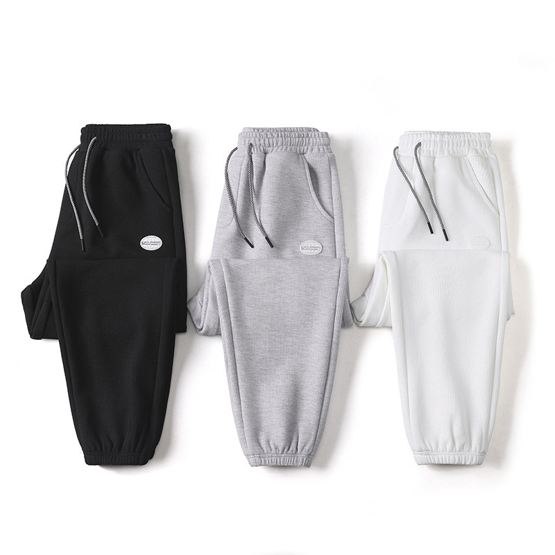 Outlet sells waffle pants men's trend autumn and winter fleece sweatpants winter loose leggings