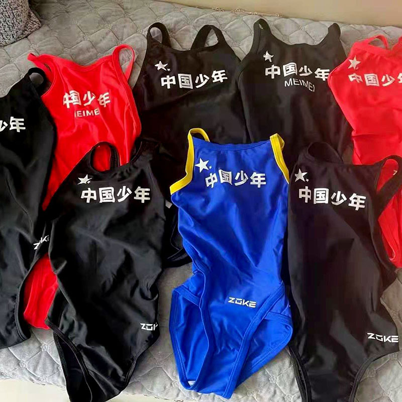 Red Black Blue Custom Printing Special Shot Black Chinese Junior Swimsuit Swimming Cap Red Chinese Junior Swimsuit Swimming Cap Blue Chinese Junior Swimsuit Swimming Cap