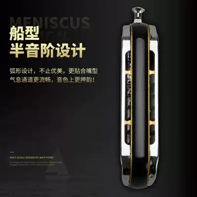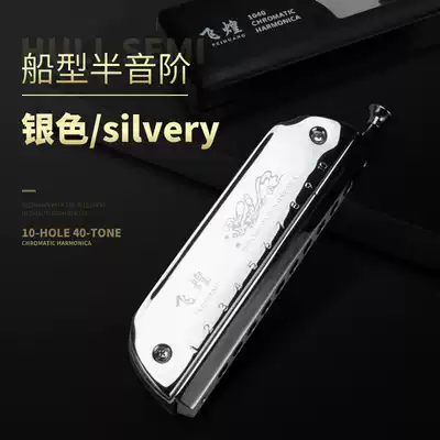 Silver Feihuang 10-hole semi-tone meniscus harmonica sent exclusive box manual disinfection cotton cloth