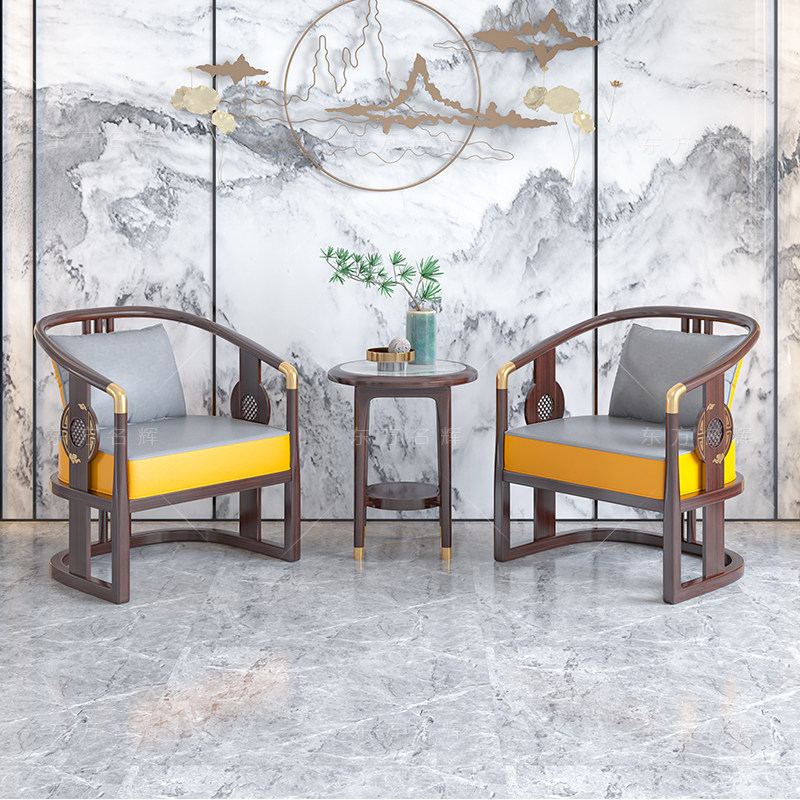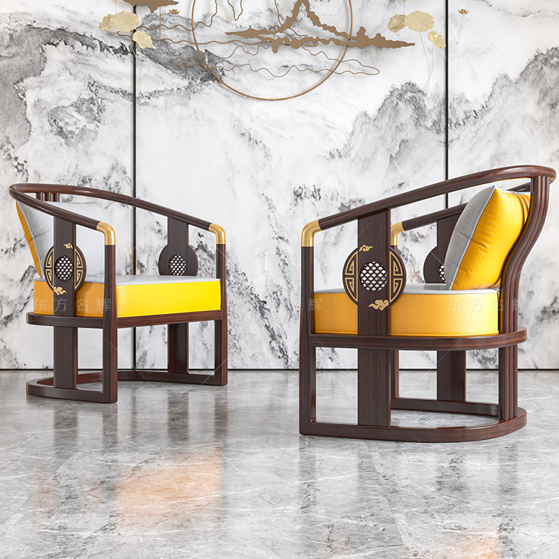 New Chinese style living room solid wood leisure chair sofa ebony wood single reception armchair bedroom balcony three-piece combination