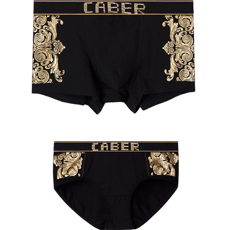 caber caberty underpants men's four corners personality creative tide women's underwear mid-waist black lovers panties modale