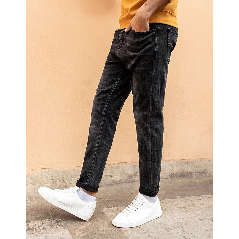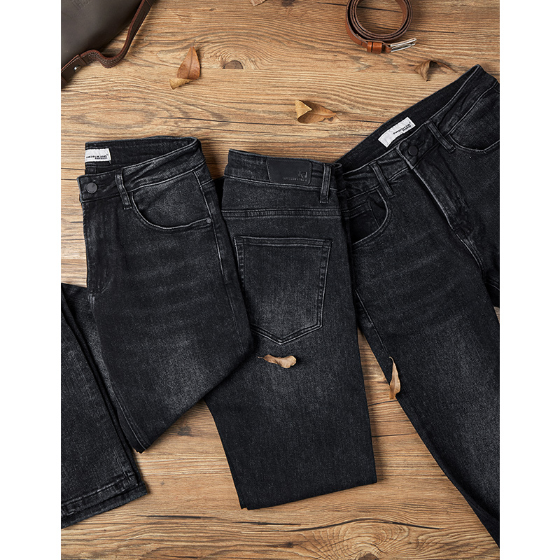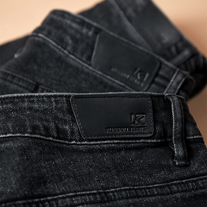 Kuegou men's black jeans men's autumn new trend washed vintage slim long pants 1836