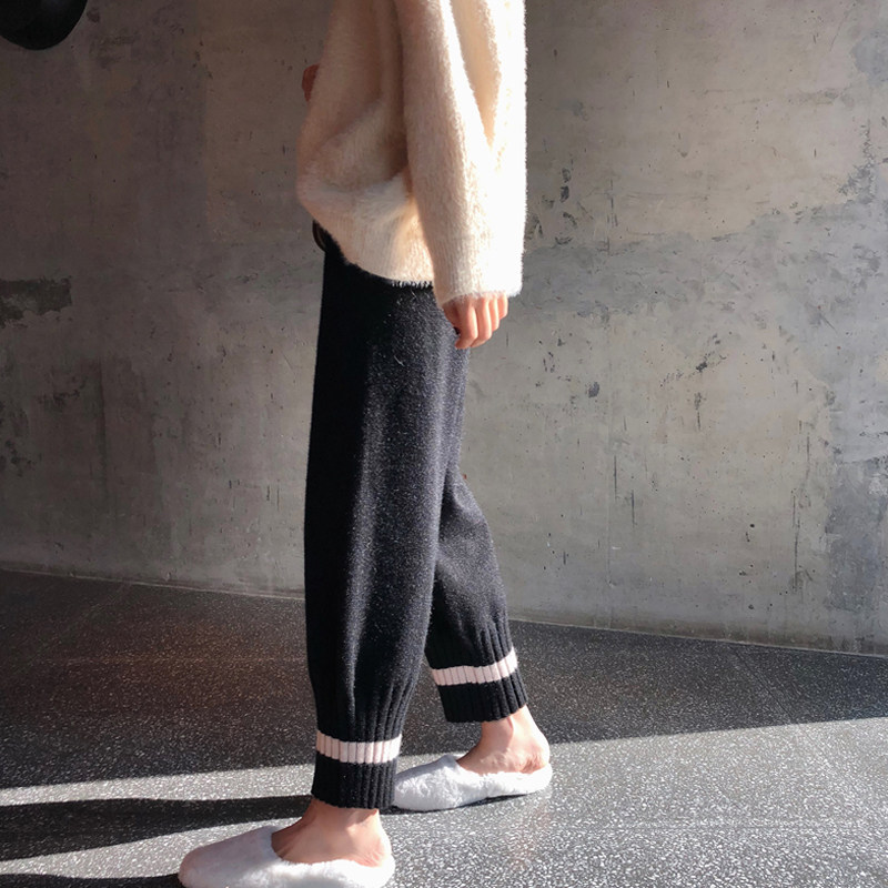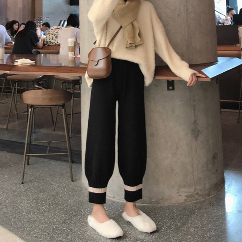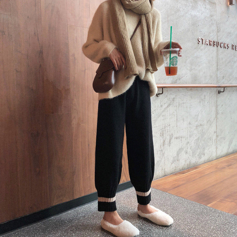 Net Red Grandma Pants Plus Suede Thickening Gross Wire Outside Wearing Broadlegged Pants Woman Autumn Winter Loose Roperin Pants Bungalow Pants knitted pants