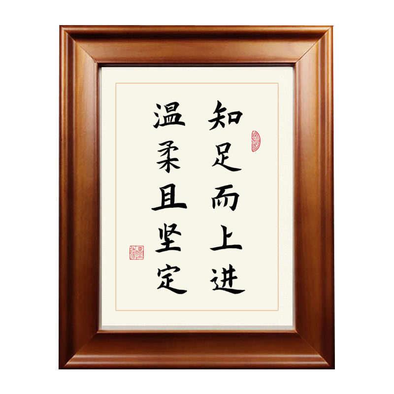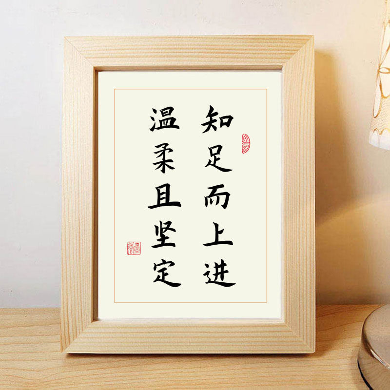 Contentment and progress inspirational calligraphy ornaments solid wood photo frame desktop table motto study decoration calligraphy and painting