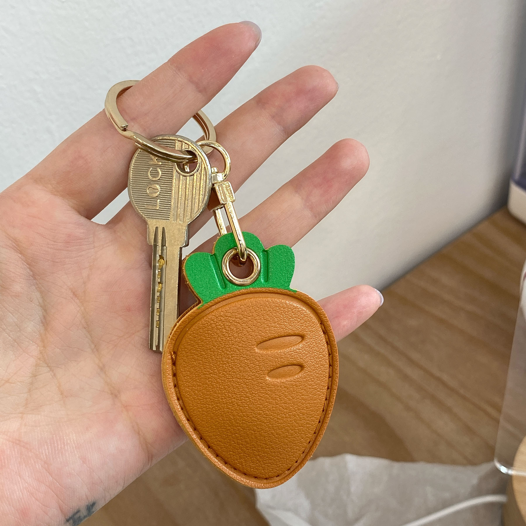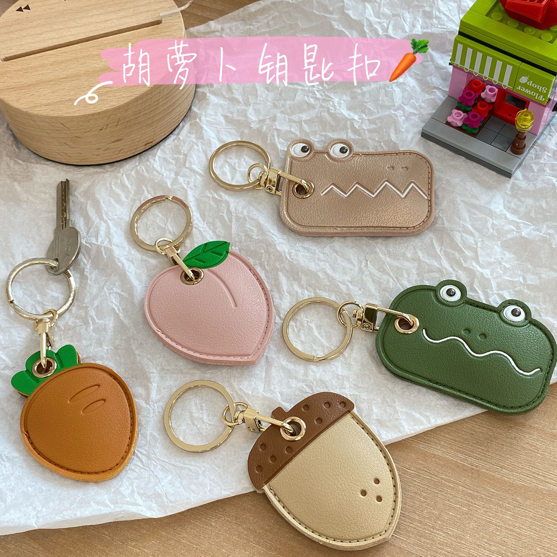 Korea ins cute peach carrot frog keychain Access control card holster key ring bag pendant gift
