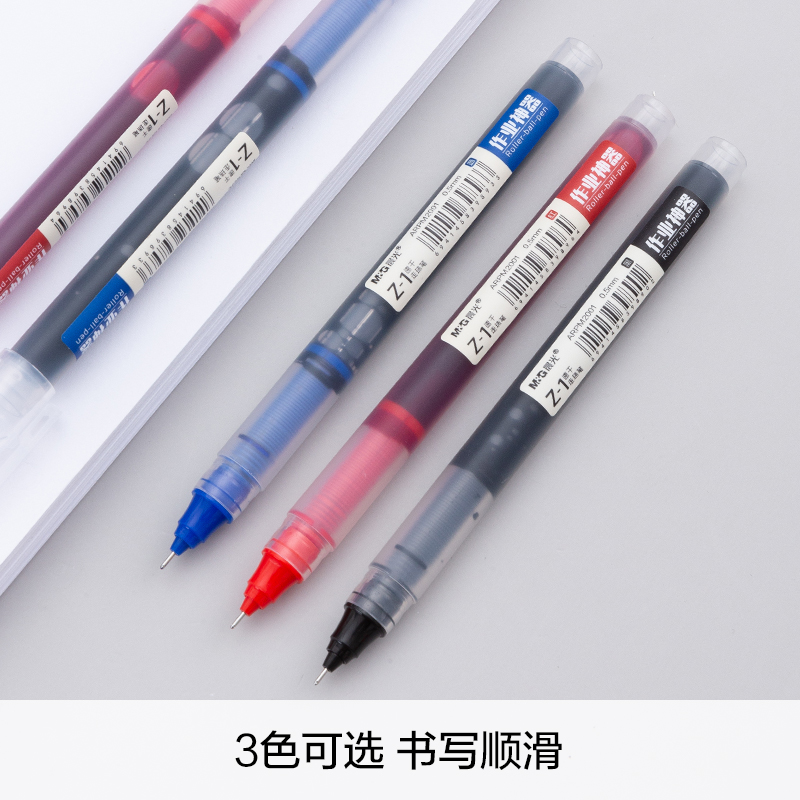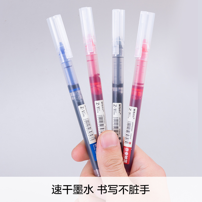 Morning Light stationery Z1 quick-drying straight liquid 0 5mm water-based ballpoint pen black red and blue large capacity full needle tube carbon color gel pen Office water-based signature pen Student exam special black pen
