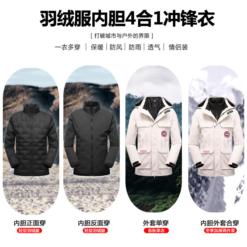 Medium-long version of submachine clothes in three-in-one autumn and winter style detachable two sides wearing down-down Neri windproof and warm mountaineering clothes