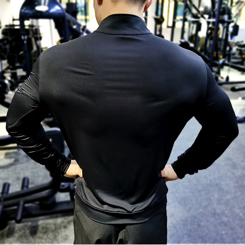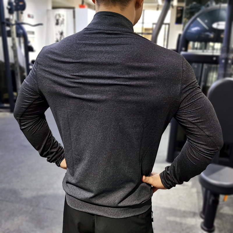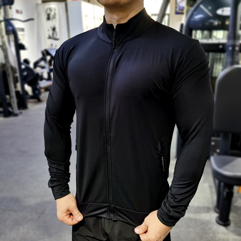 Sports Fitness Jacket Man Fall Loose Speed Dry Air Permeable Running Training Suit Long Sleeve Elastic Body Collar Sports Cardigan