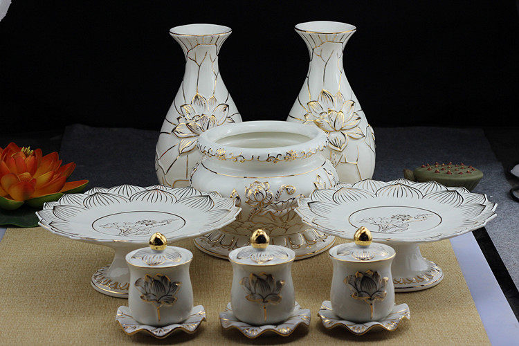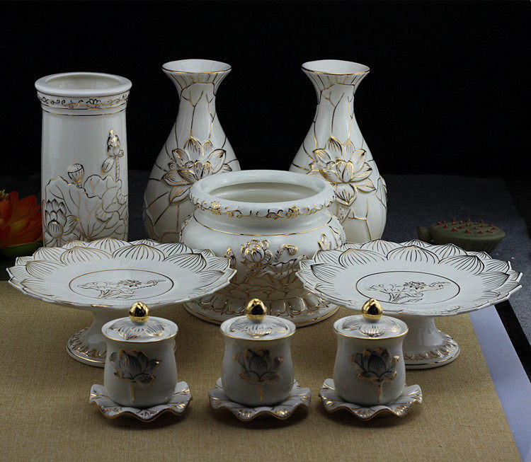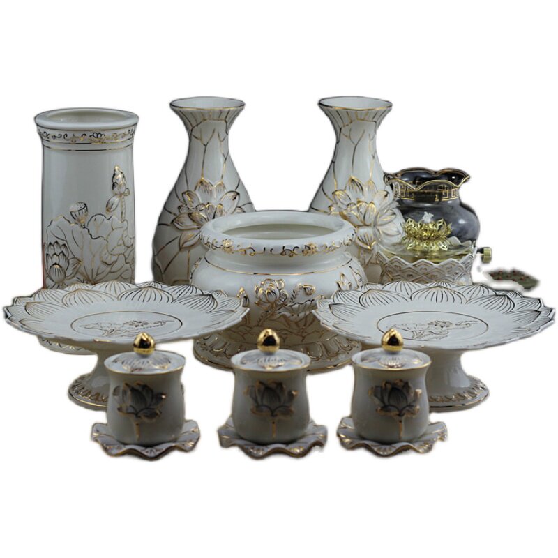 Buddha with Buddha incense burner set vase holy water cup fruit plate incense burner value for Buddha with vase - Taobao