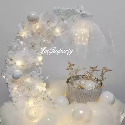 (New product) Little Red Book Lace Cloud Net Red Moon Boat Cake Decoration Frame Goddess Dream Moon Bay
