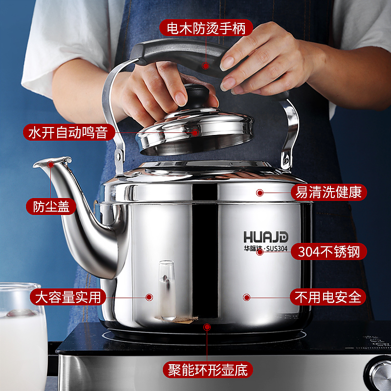 Huajida 304 stainless steel kettle gas honking home large capacity teapot open kettle gas induction cooker