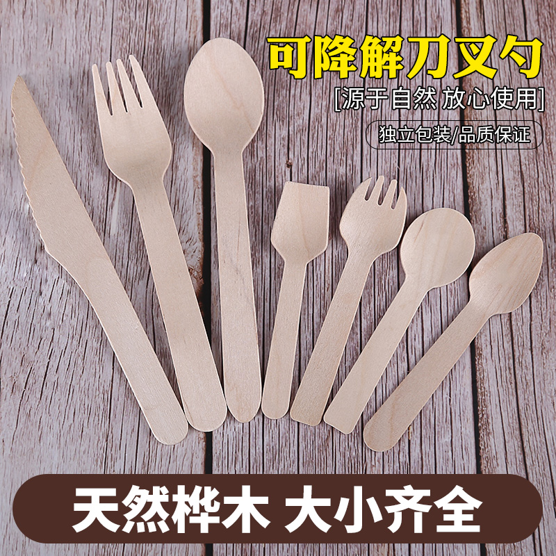 Disposable wooden knife and fork spoon Ice cream spoon Salad fork Wooden steak knife and fork cake dessert spoon 500 pcs
