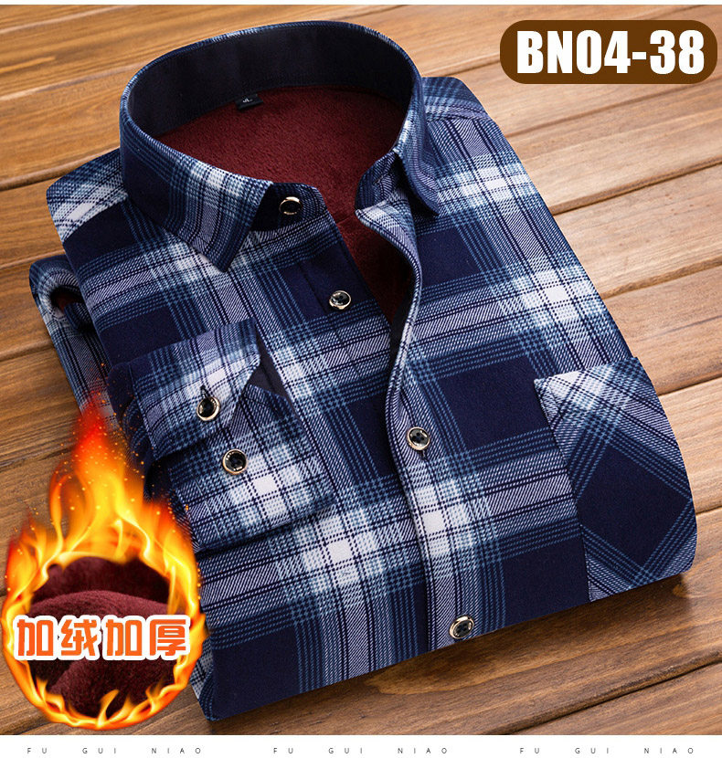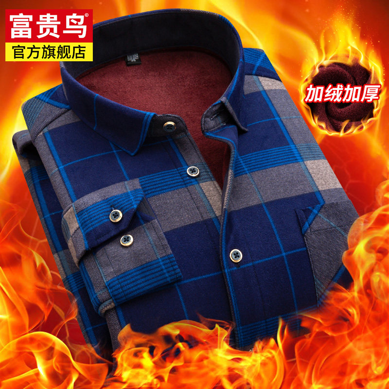 Rich bird middle-aged shirt men's long sleeves winter plus velvet thick shirt middle-aged and elderly plaid top dad suit